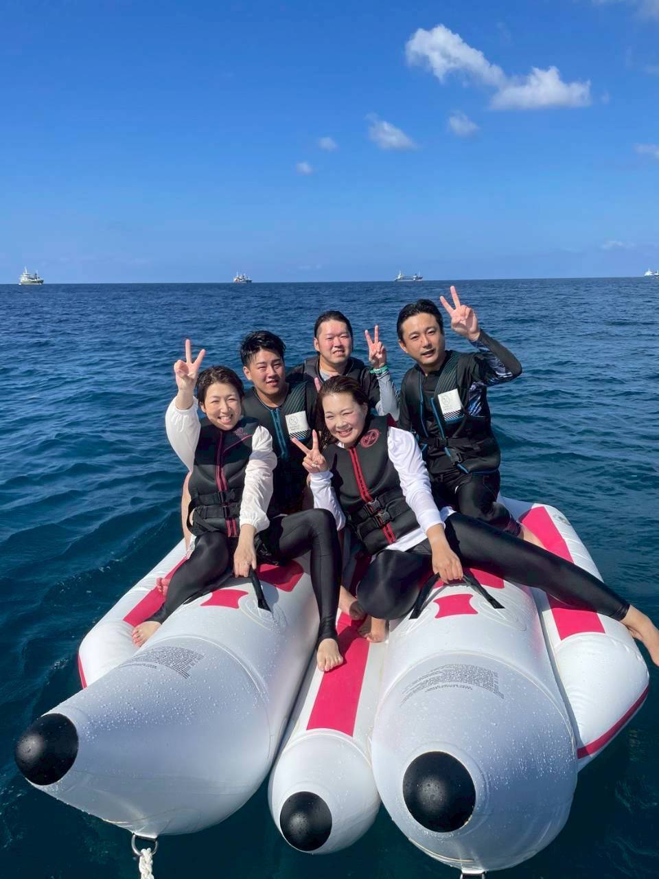 2日目、海でバナナボートなどのアクティブ組、パイナップルパークなどの室内組に分かれて行動。仕事では聞いたことのない社員の叫び声も聞け、笑顔が絶えませんでした。パイナップルパークでは、ひたすら写真を撮ってとお願いする女子社員、それを快く受け入れ、無言でシャッターを切る男子社員。それを微笑ましく見守る最年長。良い思い出です。昼からは全員で古宇利島をドライブ!今年も天候最高で、目の前には古宇利ブルーのキラキラした海、白い砂浜、真っ青な空。「最高」としか言葉が出ない。海があれば向かっていく龍野の最年少社員。若いって素晴らしい。ホテルに帰り、最後の沖縄の夜を120%楽しまないといけないということで、ラウンジで思う存分飲み食いさせていただき、お腹も心も満たされたところで、さて次は、、、ここへ来てまさかのカラオケ。若者の勢いは止まらず、そのまま深夜のカラオケへ。中年組ははしご酒。それぞれ楽しんだ後また合流し、歩いていると、目の前に突如花火がドカーン!全員立ち止まり、無言で花火を眺め、最後の夜を噛みしめておりました。その後も、お酒片手に海を見ながら夜中まで他愛もない話で盛り上がりました。